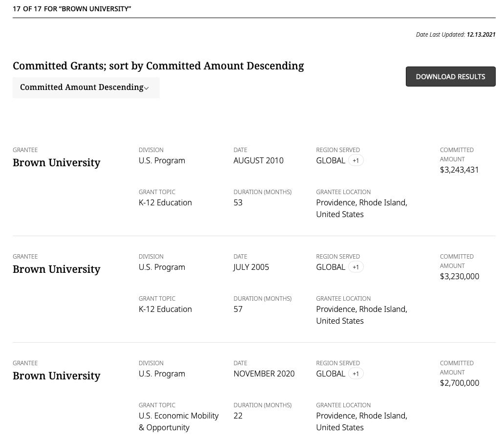 The same Bill And Melinda Gates Foundation funded Brown University $15 million